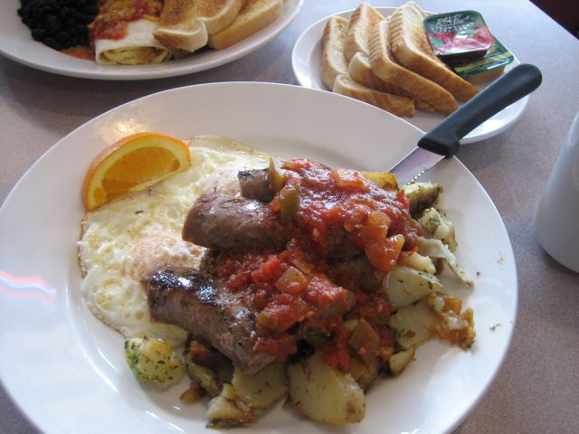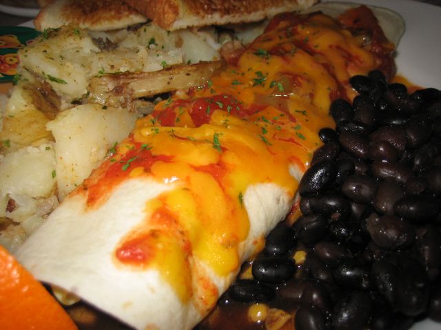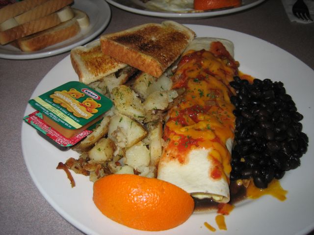 Joe's Grill serves some of the largest breakfasts I've ever seen. Look at this beast of a breakfast. I can't imagine finishing this in one sitting. I didn't eat this, but I am informed that the burrito had balanced seasoning and was not overloaded with cheese. The sides were right on the money, no mushy beans here.