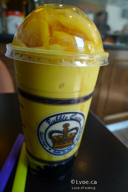 The last time I had a bubble tea here at Bubble Queen, it was some chocolate concoction. I think it was Ferrero Rocher, or something similar; this ended up being too sweet for me. So today I just go with their mango slush. Yes, it is excellent. The mango pieces are generous, ripe, and cut from the kind of mangoes which I referred to when I was a kid as the “good” mangoes. (“Good” mangoes are one of the impossibly sweet, yellow, elongated, non fibrous varieties. Not those hard stringy Tommy Atkins varieties so prevalent in the big supermarkets. This is a whole other arena I shouldn’t tangent off into right now.)