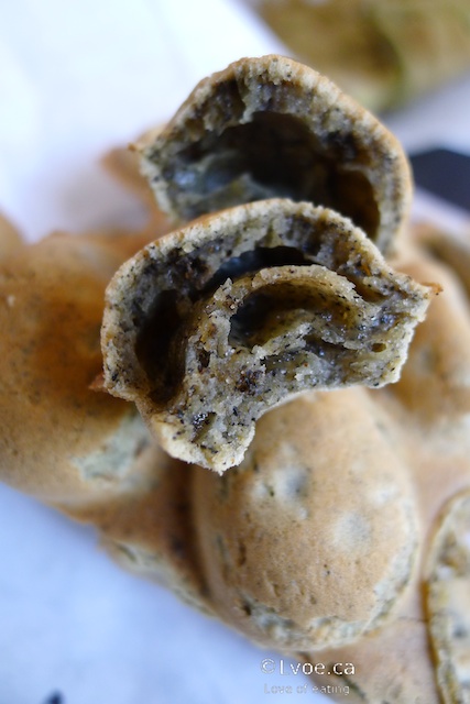I love the aroma of black sesame! The heat of this freshly made waffle helps the fragrance of the sesame waft into my nostrils.