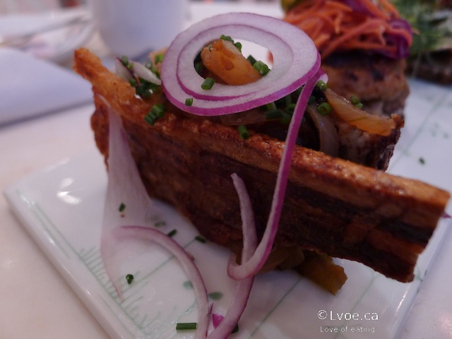The pork belly is like thick bacon. Dry and crispy but seasoned like cured streaky bacon. The caramelized onions added a touch of sweetness.