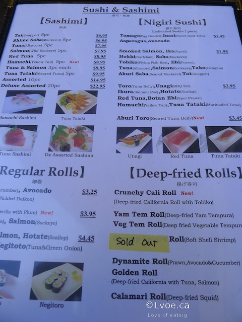 The last time I was at Bistro Taiyo it was a little Japanese home-style café with a hand drawn menu adorned with a cartoon sunshine staring back at you. That was a while ago. Now Bistro Taiyo is a sushi bar. The restaurant is tucked in the Heritage Mews in the Old City Quarter just off of Wesley Street. It’s right next to 899 Kitchen. Click here to read about my 899 Kitchen noodles.
