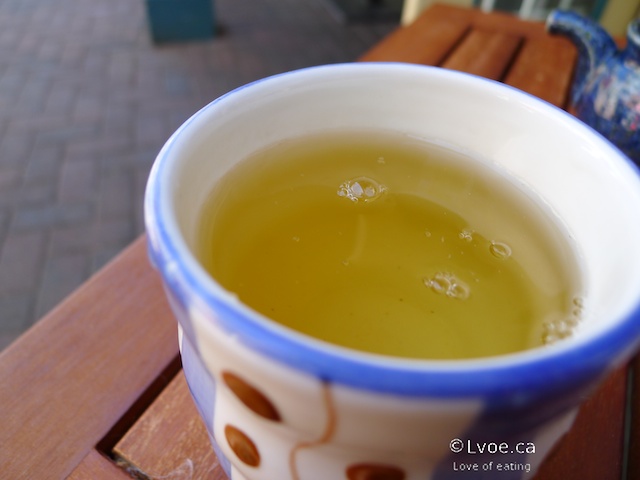 I grab a seat beside a table of knitters. No, actually I think they are crochet-ers. (It’s hard to tell some of them have needles and others have hooks.) It must be a club or something because it seems there is some sort of mentorship. Service is pretty fast and courteous. The tea comes out with the menu and I’m left to peruse.