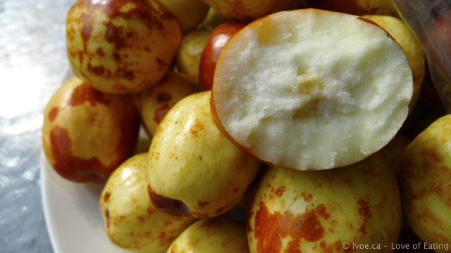 I had no idea what fresh dates even looked like three weeks ago; I’m more familiar with dried dates than fresh ones. When I was a kid, there would be various “healthy soups” that contained these dried jujubes. I remember becoming straight-up annoyed to learn that these “Jujubes” were not of the confectionary variety I had imagined in my eight year old mind. I have since gotten over that deception.