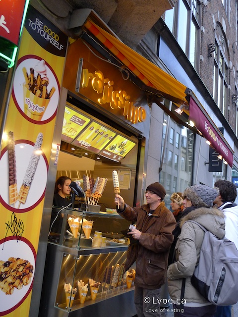 Rajissimo makes fun treats. Look at how much fun this guy is having with his waffle on a stick! I need to take my gloves off to eat these fried morsels, but I only get half way through before my fingers become numb from the chilly weather. I cradle my hot chocolate until I can feel my fingers again; then I slip seamlessly back into the Strøget crowd.
