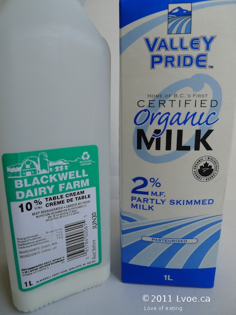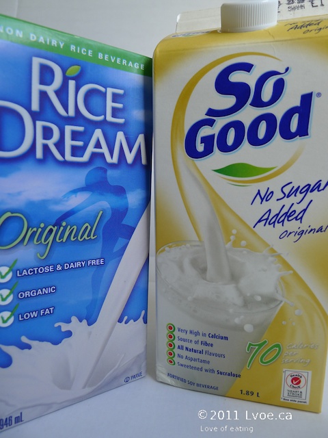 You can use any kind of liquid really. For example, I’ve used Rice Dream, soy-milk, cream or milk with great results. I know some people have used water, but I find water a bit blech. I think I’ll use soy today.