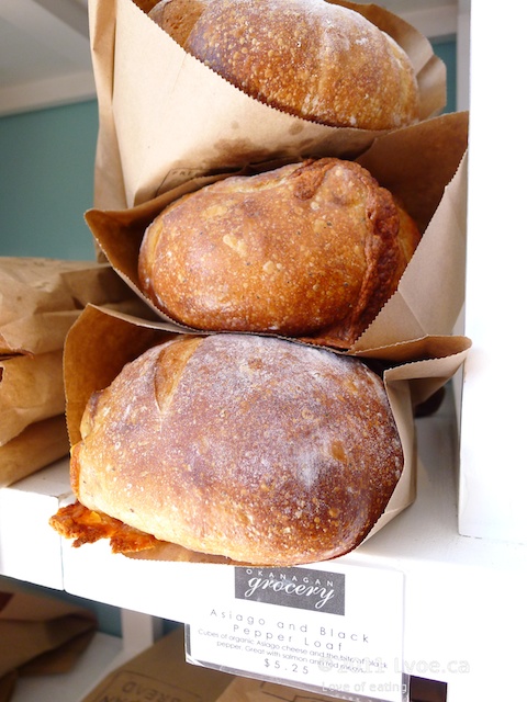 Okanagan Grocery Artisan Breads can be easily missed if you’re just driving by. They share the building with a seafood store called Codfather’s. (Yes, you read it right…) But the signage for the fish place overwhelms the building and if you weren’t looking for it, you’d never know there is a kick-ass bakery tucked in the corner. Look for it the next time you stop for gas at Guisachan Village in Kelowna.