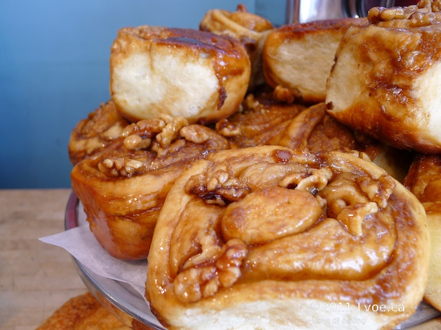 The wonderful staff behind the counter had a bun too wee to sell and gave it away as a sample. The sweet dough is pillow soft with enough brown sugars and butter to candy the walnuts and insure there is enough stickiness throughout.