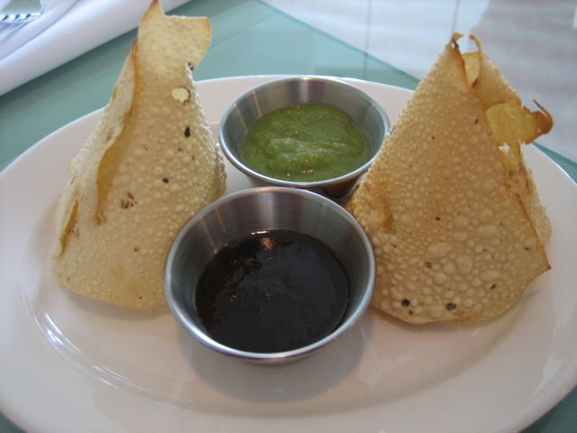 These were served with the proverbial mint and tamarind chutneys.
