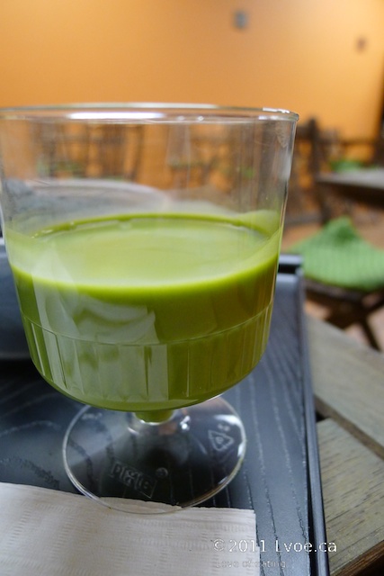 Packs a green tea punch. The green tea-ness is definitely here. I like it a lot. The green tea flavour keeps the pudding from getting too sweet. There is an extra shot of a green tea smoothie concoction to drizzle into the pudding for more GT pow. Clearly you can see it’s not a fancy dessert, but both are simple sweet endings to a burger meal.