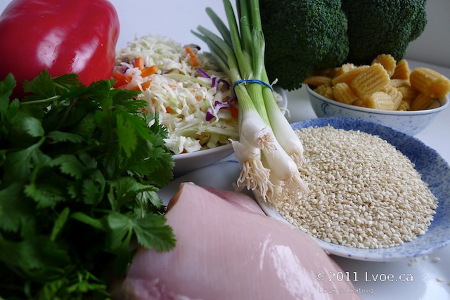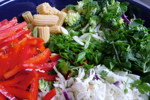 To enter the draw, y'all had to send in recipes, ErinH sent in the following recipe that she prepares on busy nights. She calls it Asian Chicken Salad. Here’s my attempt: