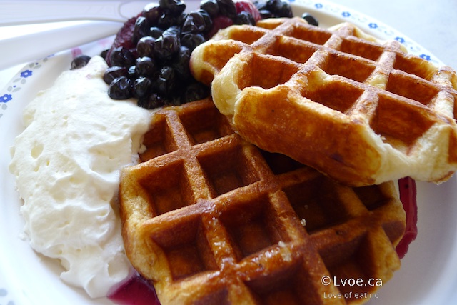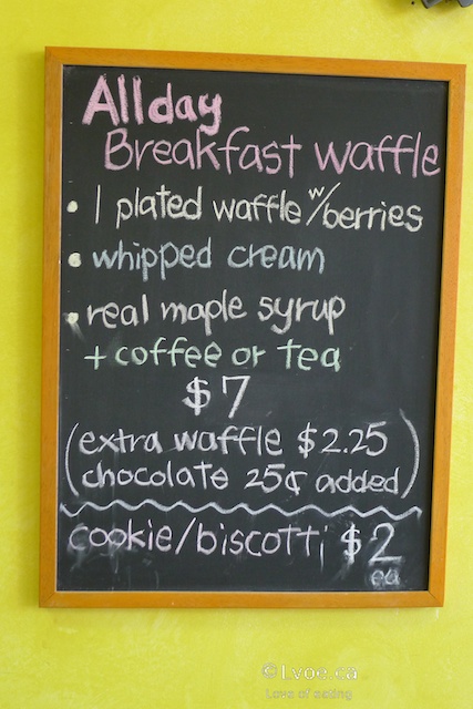 The display case is so enticing. There’s not just a waffle calling me, but crème brûlée and cream puffs too. It is morning right now, and I can’t justify eating crème brûlée, cream puffs and waffles for my first meal.
