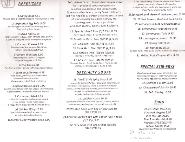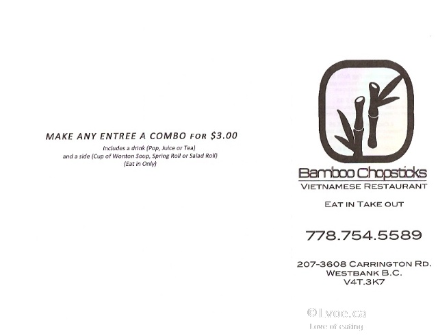 Spending a few days in West Kelowna for a meeting; I arrive in town a little earlier than expected, so I went to grab some phở before Bamboo Chopsticks closes. Bamboo Chopsticks is a Vietnamese cuisine restaurant in Westbank. It is located in the Snyatan shopping complex. Bamboo Chopsticks sits opposite Winners and next to Mr. Mozzarella Pizza.