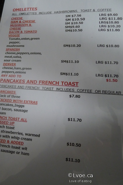 This is one of the sandwich specials today. The Track Side Diner serves breakfast all day. I am contemplating having my favourite morning foods, but I opt for a sandwich instead. I must still have breakfast on the brain, because the open faced Denver is pretty much an omelette on toast. Underneath all that cheddar I find a scramble of bell peppers, onions and ham. The sandwich itself is pretty filling. It reminds me a bit of the omelette I had at the Heartland Restaurant a few months ago in Cache Creek.