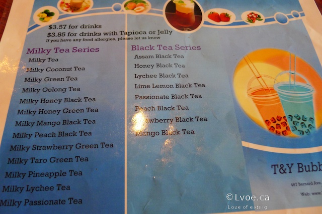 T&Y Bubble Tea has a service window that opens out onto the sidewalk. This would be convenient, but window service is not available tonight. So we head inside. This bubble tea joint is inside a sushi joint. A triple mix of Taiwanese, Korean and Japanese (???, I know.) T&Y BBT occupies a small space up at the front, inside of the Asian Food Restaurant. (Such a vague and generic name, right?) A rice paper screen separates the two work spaces inside the sushi restaurant.
