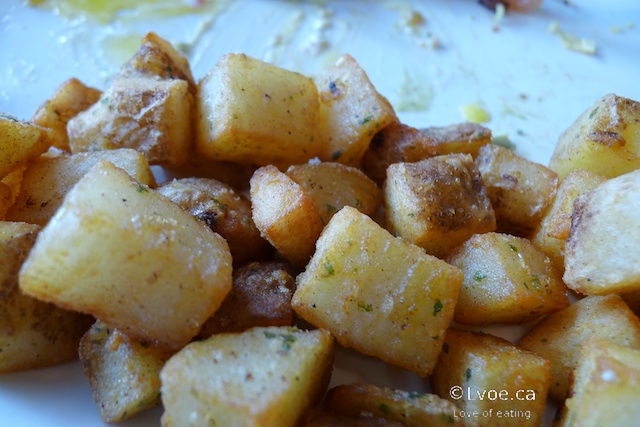 The default hash browns are Cherry Pit panfries. However you may substitute Crispy Crunchy Savoury Hash browns and toast for 0.50 cents. The Benedict came with Cherry Pit panfries, but with the omelette, we opt for the savoury hash brown cubes.