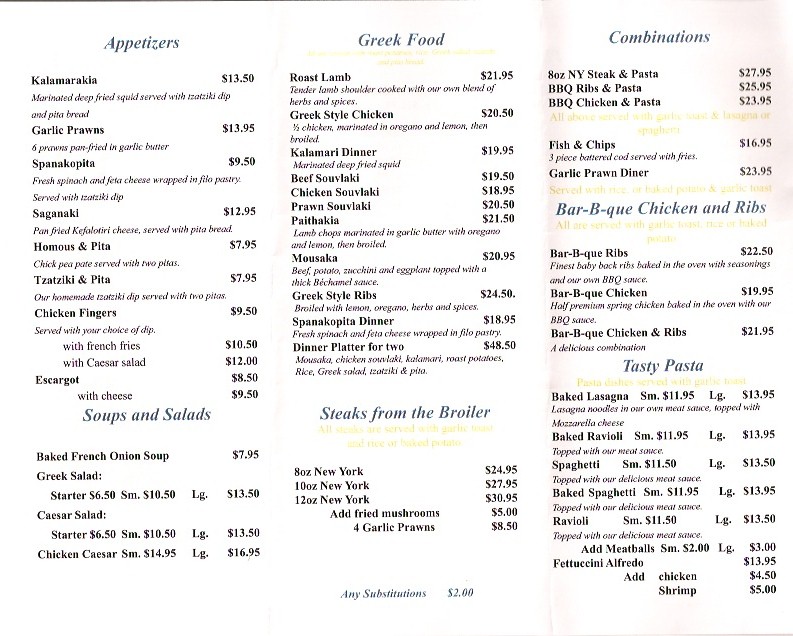 We waited 2 hours for food, no bread came, drinks didn't come for 30 minutes, when the food came the meat was raw, the Greek salad didn't have any oil and nearly any feta cheese on it. We asked to speak to the manager (the owner) and he came out we told him our food was raw and he told us to pay our bill, leave and never come back! We live in the same town as this restaurant and see these people and we get treated like this for the first time we've ever eaten there? No paying customer should EVER be treated that terrible, Not to mention the bill for 3 people was $125! I guarantee I will never eat there again!