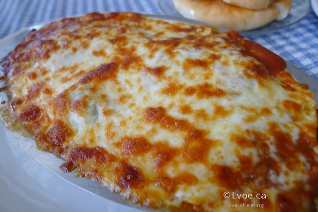 The baked ravioli came screaming hot out of the oven. Underneath all that browned cheese I find a generous population of the little pasta pockets. I have no idea what kind of meat is in here. “Meat sauce” is the only descriptor, and I didn’t bother to ask. The sauce is very commercial tasting if you know what I mean. The pasta as a whole is okay, but just a bit Chef Boyardee-ish. A side of garlic toast accompanies the ravioli.