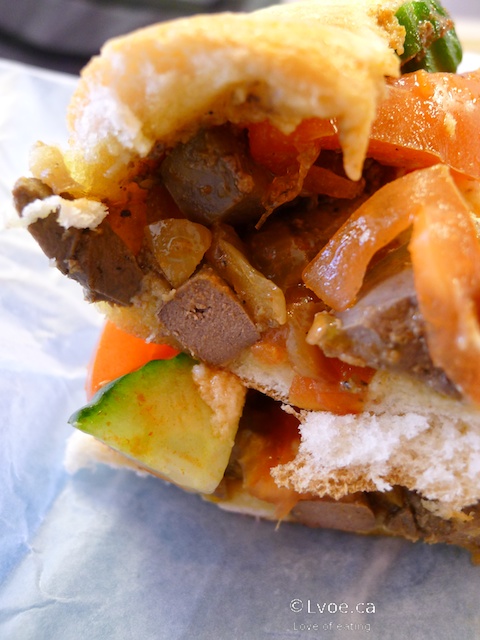 The lamb fest continues with the mafroom*. This is ground lamb in juicy saucy goodness. If you don’t like the aroma of liver go for this one. The spice flavours are more intense and texture is like that of a sloppy joe. The vegetables and mayo are optional. I like it.