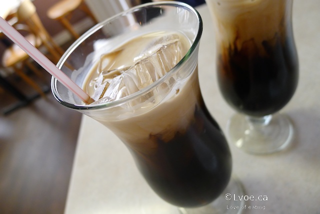I’m too full for dessert so I opt for a refreshing iced coffee instead.
