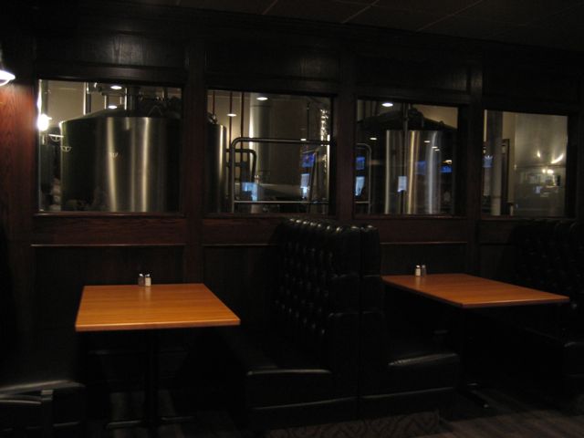 Okay, mental note: don't ask DL to do anymore blog-within-a-blog entries...In my own terms: DL thought the house lager was pretty standard. He really enjoyed the remaining three selections in this order 1. Georges' Extra Special Bitter 2. Pursuit of Hoppyness 3. Belgian Pepper Ale. There is a wonderful slightly bitter aftertaste in the Pursuit of Hoppyness; if you wait a bit after you swallow your sip (or glug,) the intensity of the aftertaste will become more significant. Very interesting. He will definately be back for more of the Extra Special Bitter and to try the two others that we missed: the Mocha Porter and the pilsner.