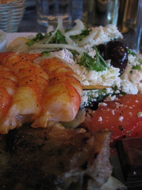All the sides were pretty typical. The rice, potatoes and Greek salad were all decent. The bread came out hot, soft and chewy. The service was very attentive and friendly. I ended up taking most of my meal home with me for lunch the next day. The portions are very large, however isn't that pretty common at homestyle Greek restaurants? You need to come hungry, very hungry. When we left for my evening appointment the three comarades were blissfully luxuriating in the benefits of their newly formed bond. On lookers continued to walk by doing a double-take, smiling, and shaking their heads.
