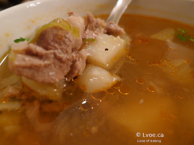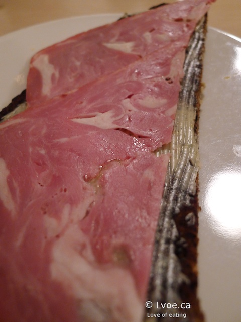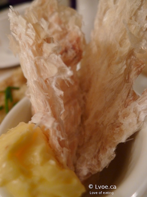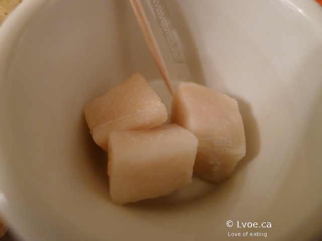 Have you ever watched the Iceland episode of No Reservations? Well, this is the stuff. It is also known as putrefied shark. It is served on little toothpicks, because apparently you do not want to get the smell on your fingers. At first the saltiness hits you and then turns to an ammonia aroma that literally clears your sinuses like menthol. The ammonia reminds me of eating Chinese preserved duck eggs. Other than that, there is little flavour in those lil' cubes. DL thought the shark tasted like strong salty licorice (???) At times, I question DL’s taste buds...