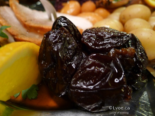 Hey why don’t we use prunes more often as a side in North America? These dried plums add an earthy sweet to the meal. The prunes also give the plate an extra dimension of sweetness that really aids the pork and duck.