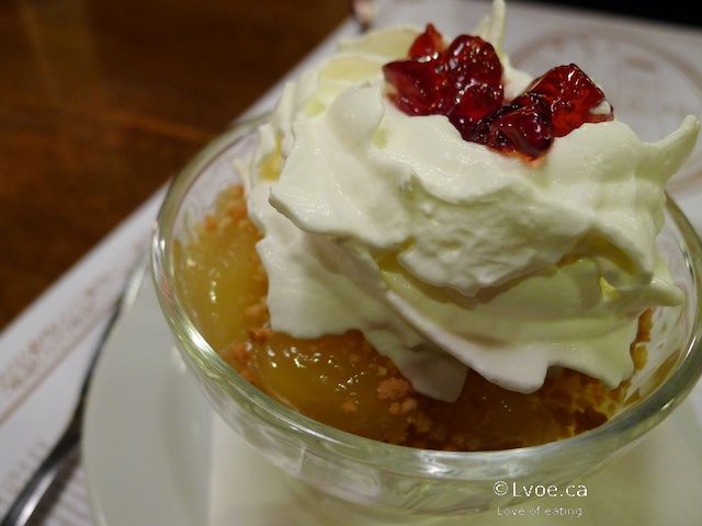 There are no offers for a warm or cold version of the apple dessert as per menu description. By default the dessert is served cold, with whipped cream and lingonberry jelly. The baked apples are actually a really nice end to my meal. Not too sweet with a super crunchy mystery topping.